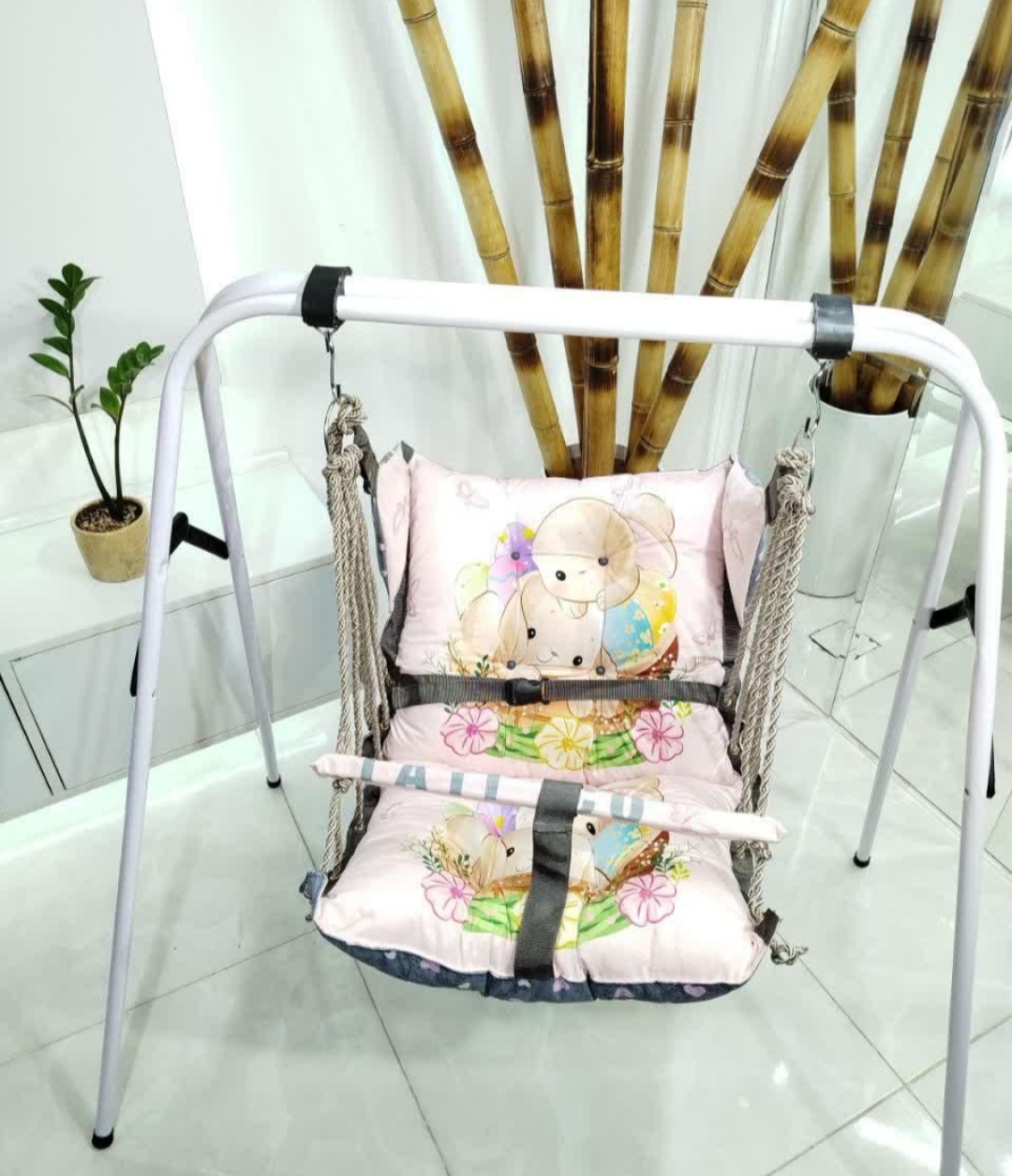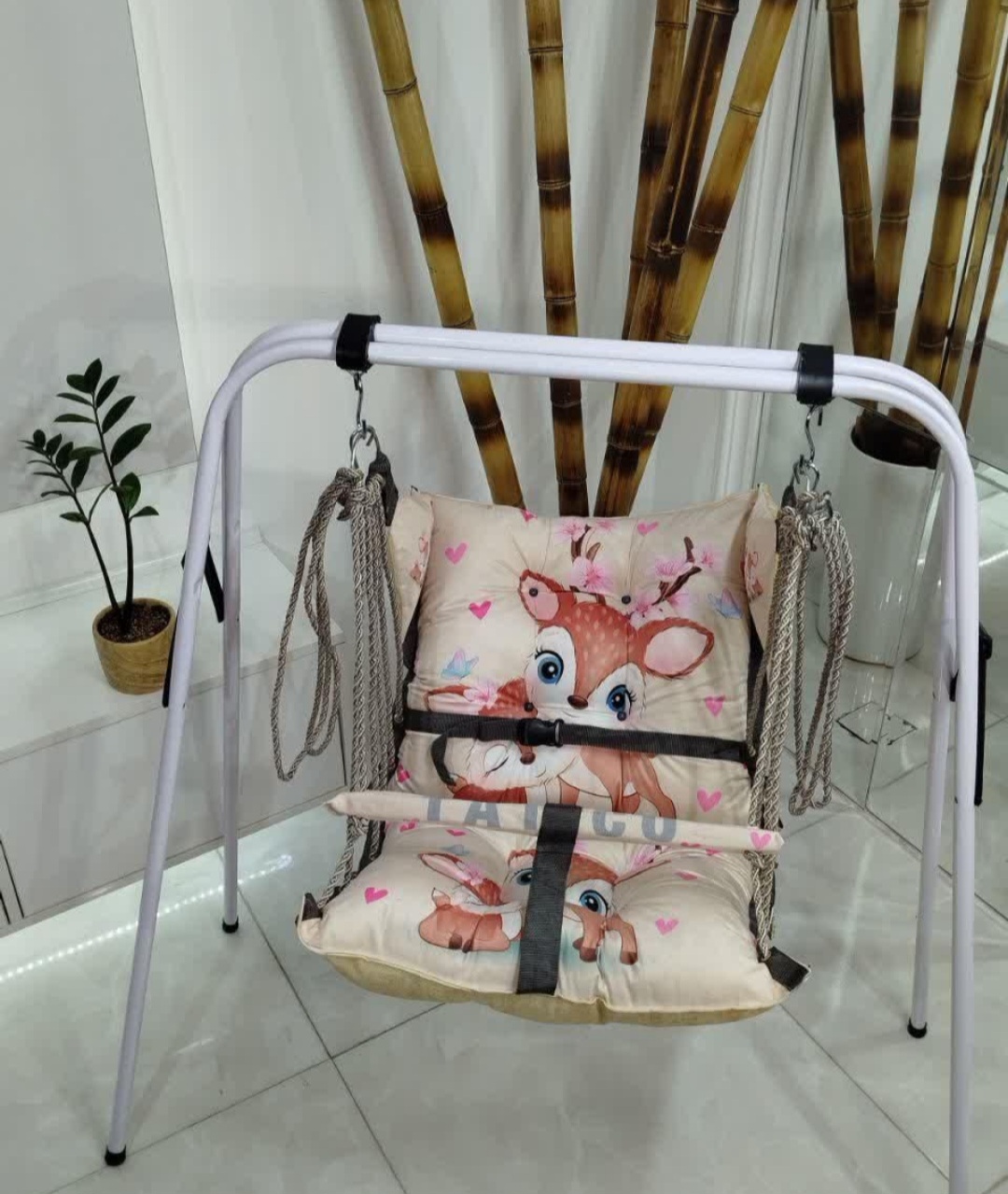 تاب مخمل حالت خوابیده و نشسته کمر بند دارد کاور دارد پایه فلزی تاشو بی بی استار